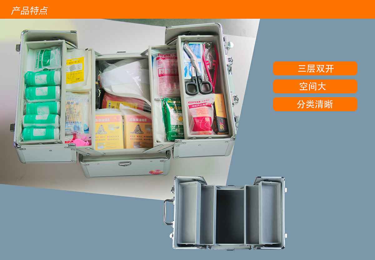哈尔滨维思资源开发有限公司综合急救箱,独特的箱体设计,适用于劳保、厂矿、公共场所、办公室、车间、学校、社区、健身房、实验室、建筑工地等人员密集的场所及防灾减灾等领域。